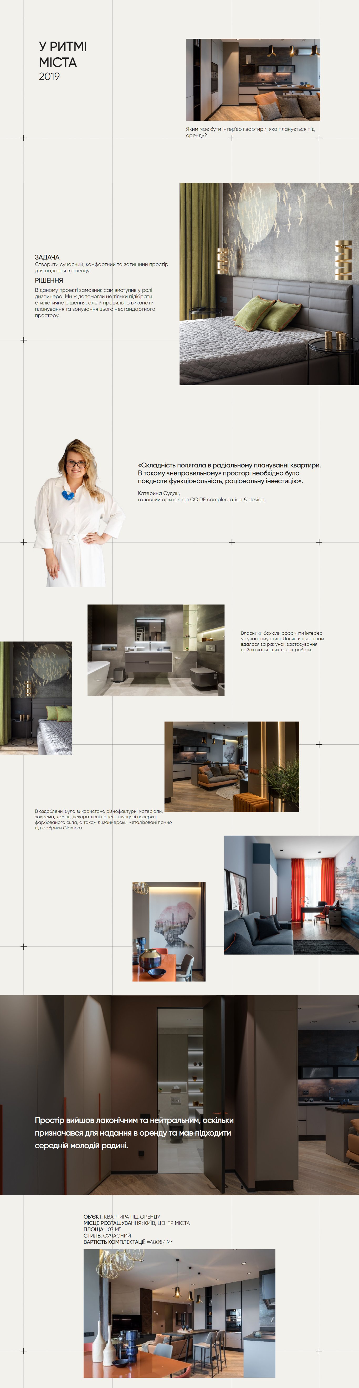 «Складність полягала в радіальному плануванні квартири. В такому «неправильному» просторі необхідно було поєднати функціональність, раціональну інвестицію».